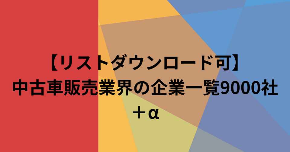 リストダウンロード可 中古車販売業界の企業一覧9000社 A リストちゃん Note